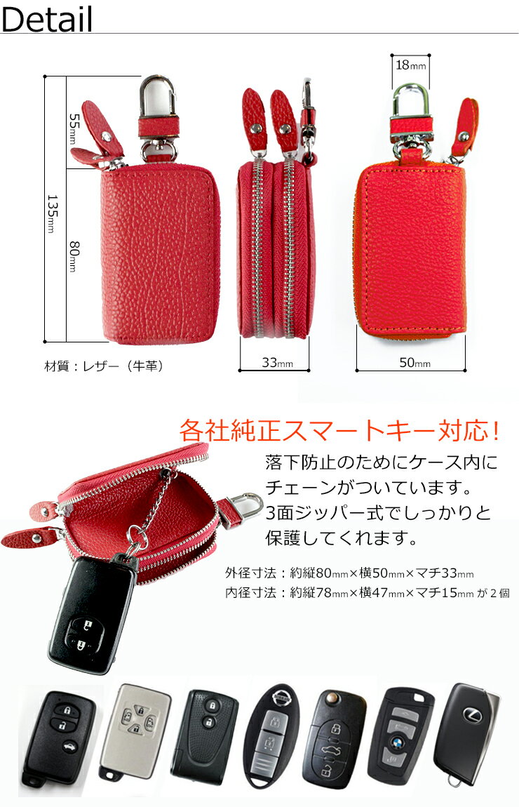 本革 スマートキーケース ダブルファスナータイプ(全23色)トヨタ ホンダ 日産 スズキ ダイハツ マツダ スバル 三菱 プリウススマートキーカバー キーケース スマートキー 鍵 ダブルキーケース ダブルポケット 車の鍵 2個 箱入り