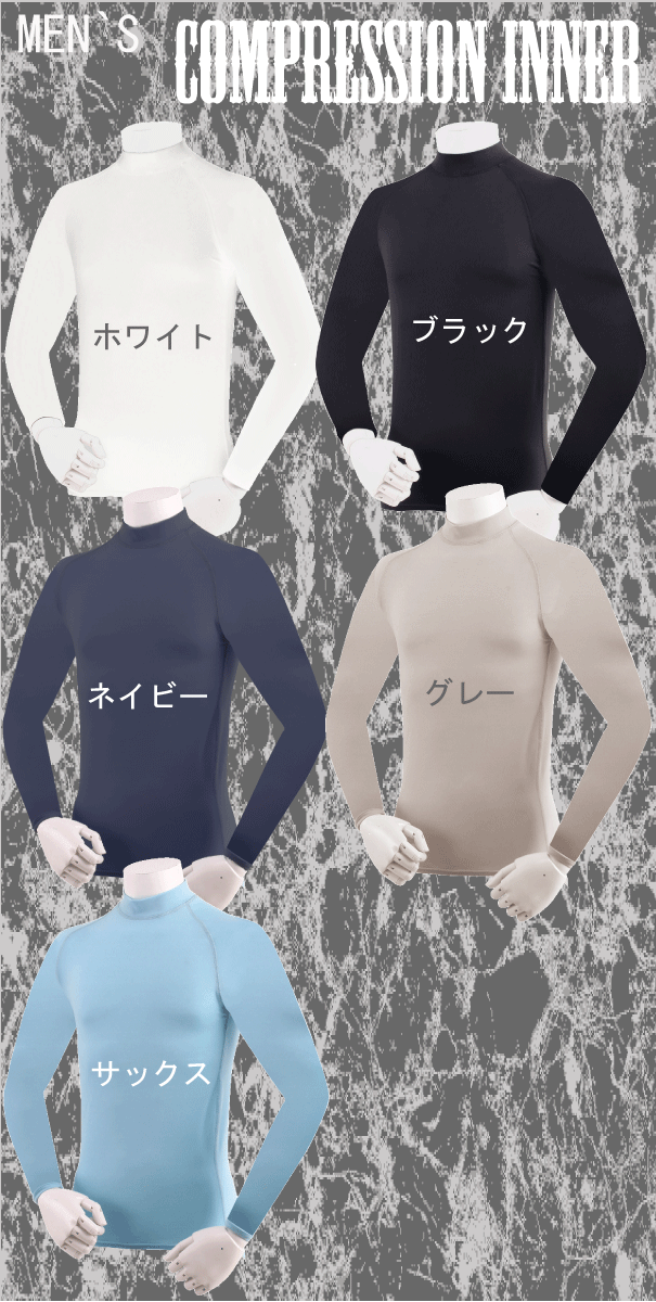 ゴルフウェア メンズコンプレッションインナー メンズインナー ゴルフインナーシャツ アンダーウェア 長袖ハイネック 5色から選べます